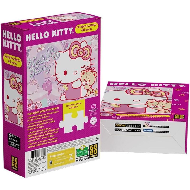 -Entre no mundo cor-de-rosa da personagem mais fofa de todos os tempos com este quebra-cabeça encantador da Hello Kitty! -Com tons suaves, detalhes brilhantes e uma estética que transborda carinho, ele é perfeito para quem ama delicadeza e diversão. -Cada peça é um pedacinho de doçura que, ao se encaixar, forma uma imagem mágica com efeito de brilho e todo o charme dessa gatinha que conquistou gerações. Características: Marca - Grow Cód. 4918 Quebra-cabeça com 60 peças Tamanho da imagem 30,8 x 22,4 cm Recomendado para a partir de 4 anos