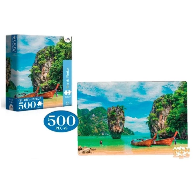 O Quebra Cabeça Ilha de Phuket 500 Peças da Toyster oferece longas horas de entretenimento garantido. Com uma imagem paradisíaca da Ilha de Phuket, este quebra-cabeça exercita o cérebro, aumentando a concentração e desenvolvendo a criatividade. É feito em papel cartão, fácil de usar e guardar, e resistente. Imagem montada (aproximadamente) aproximadamente 47,8 x 34,8 cm