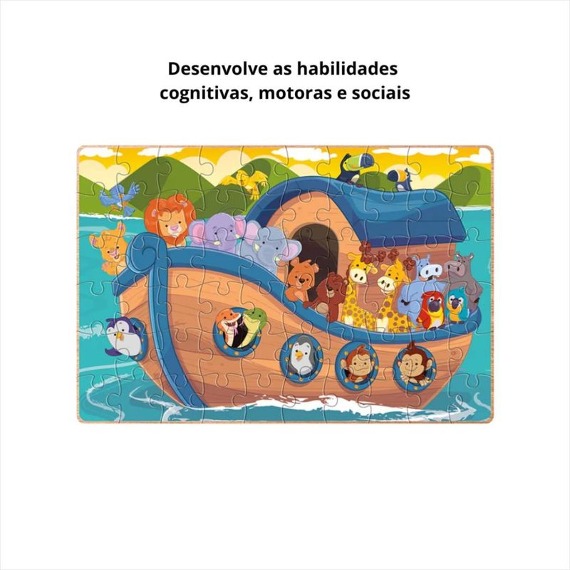 Quebra-Cabeça Arca de Noé - 60 Peças - Nig Estimule o aprendizado e a diversão com qualidade e segurança! O Quebra-Cabeça Arca de Noé da Nig é um jogo educativo e pedagógico que proporciona momentos de integração e aprendizado para as crianças a partir de 4 anos. Composto por 60 peças grandes em madeira, coloridas e seguras, é ideal para estimular a coordenação motora, raciocínio lógico e criatividade dos pequenos. Diferenciais: Peças resistentes e seguras, garantindo a durabilidade do brinquedo. Design alegre e colorido, que estimula o interesse das crianças. Produto fabricado pela Nig Brinquedos, sinônimo de qualidade e confiança. Mais sobre o Produto: Além de proporcionar diversão, o Quebra-Cabeça Arca de Noé auxilia no desenvolvimento cognitivo das crianças. Ideal para brincar em família, estimulando a imaginação e a interação entre os pequenos e os adultos. Indicado para escolas, creches e brinquedotecas, sendo um ótimo recurso pedagógico. Dicas de Uso: Reserve um tempo para montar o Quebra-Cabeça Arca de Noé com as crianças, incentivando a colaboração e a resolução de problemas em conjunto. Após montado, utilize o quebra-cabeça para contar histórias sobre os animais e o dilúvio, estimulando a criatividade e a expressão oral das crianças. Ficha Técnica: Marca: Nig Conteúdo da Embalagem: 60 peças em madeira Dimensões da Embalagem: 24 cm de altura x 24 cm de largura x 7 cm de comprimento Peso: 0.5 kg Recomendado a partir de 3 anos Registro: 006156/2021 Proporcione momentos de diversão e aprendizado para os pequenos com o Quebra-Cabeça Arca de Noé da Nig. Garanta já o seu!