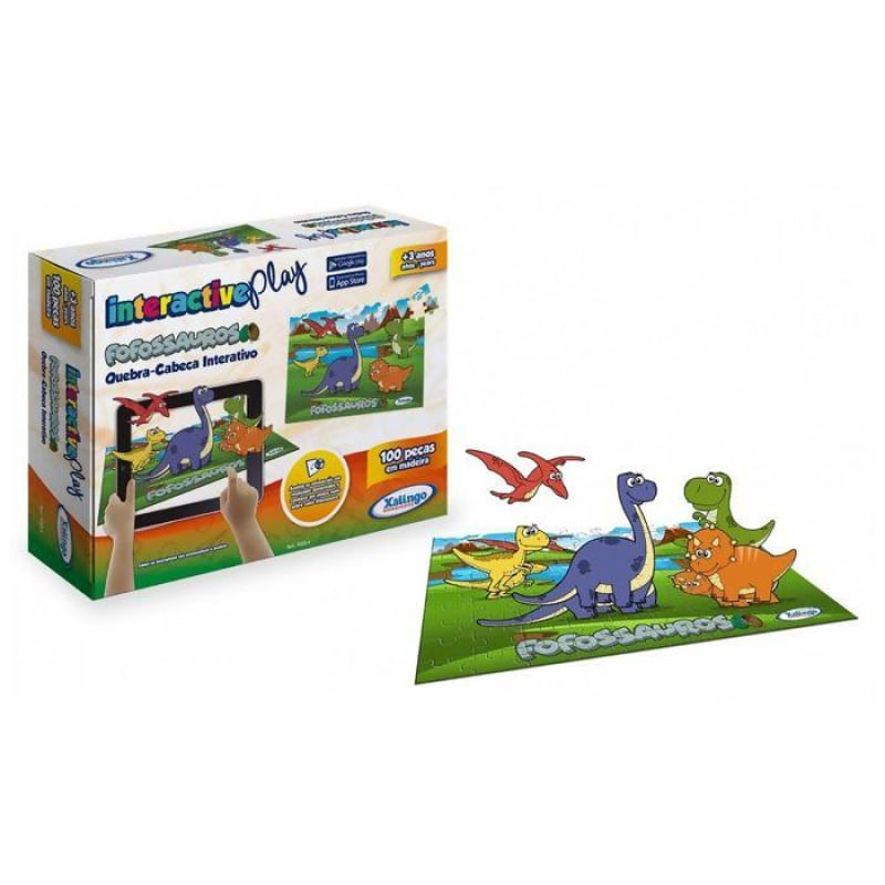 DESCRIÇÃOO Quebra-Cabeça Interativo Fofossauros, da linha de jogos Interactive Play, une a brincadeira física à realidade aumentada, proporcionando uma divertida experiência de aprendizado. Além de montar o quebra-cabeça de 100 peças em madeira, é possível capturar as imagens através do aplicativo para smartphones e tablets e aprender sobre os dinossauros interativamente. O jogo auxilia no desenvolvimento da atenção, discriminação visual, pensamento lógico e da relação parte e todo. A brincadeira é indicada para crianças a partir dos 4 anos.DADOS TÉCNICOSMedidas da embalagem (CxLxA): 24 x 5 x 18 cm