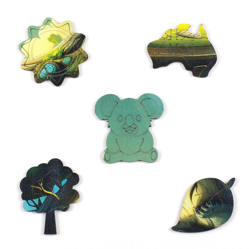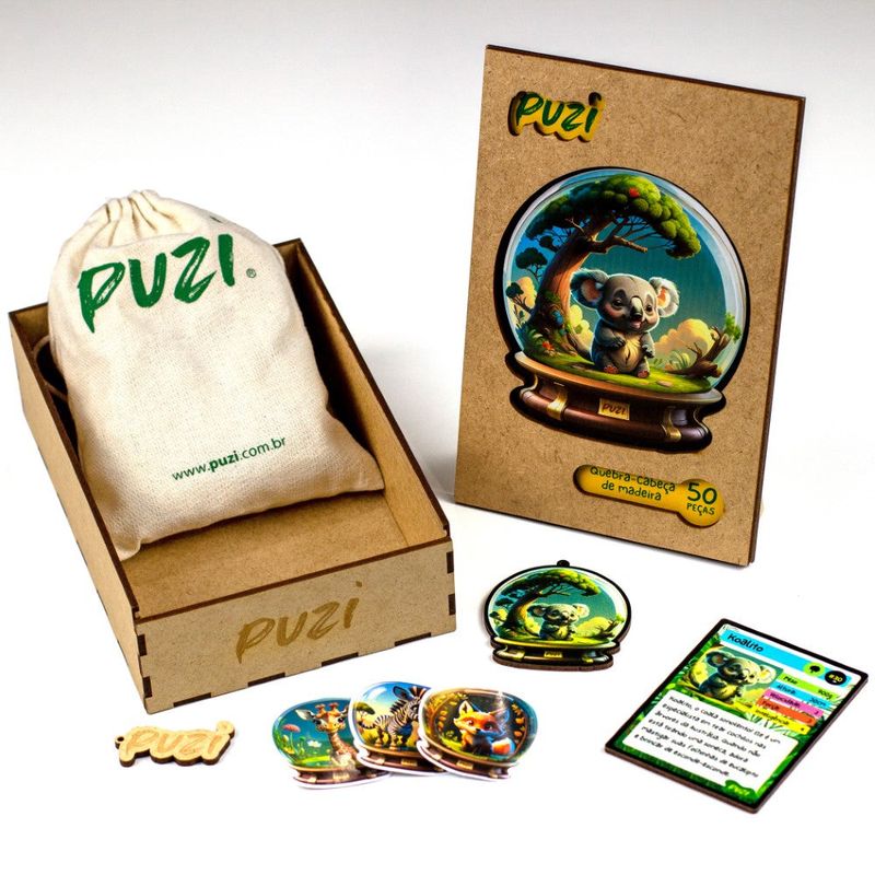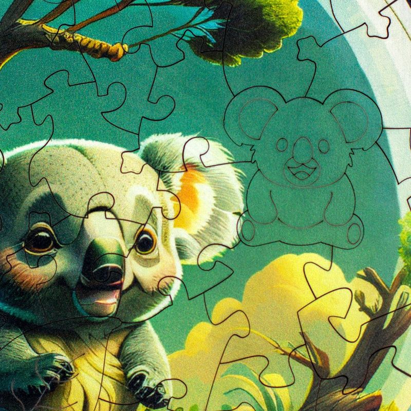 Neste quebra-cabeça, a criança entra no mundo calmo e acolhedor desse coala dorminhoco. Entre as peças temáticas, surgem formas que representam o Koalito e seu habitat natural, criando uma conexão carinhosa e divertida com o personagem.