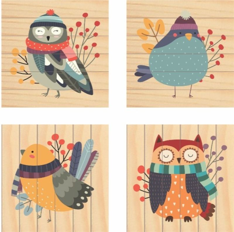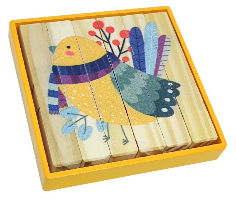 4 figuras de bichos aéreos para a criança montar, como se fossem 4 quebra-cabeças tridimensionais.