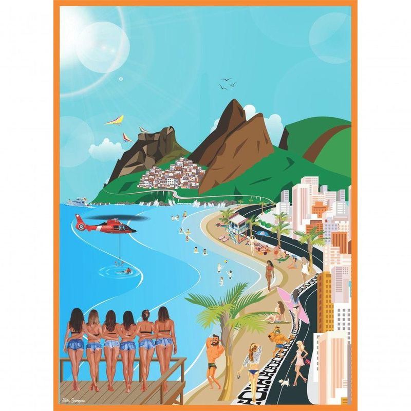 Quebra cabeça praia de Ipanema Ilustrado1014 pçsMaterial: Papelão Paraná Nº70 rígidoAcabamento resinado brilhanteAltura: 0.15 cmLargura: 72.00 cmComprimento: 98.00 cmPeso: 1000 g