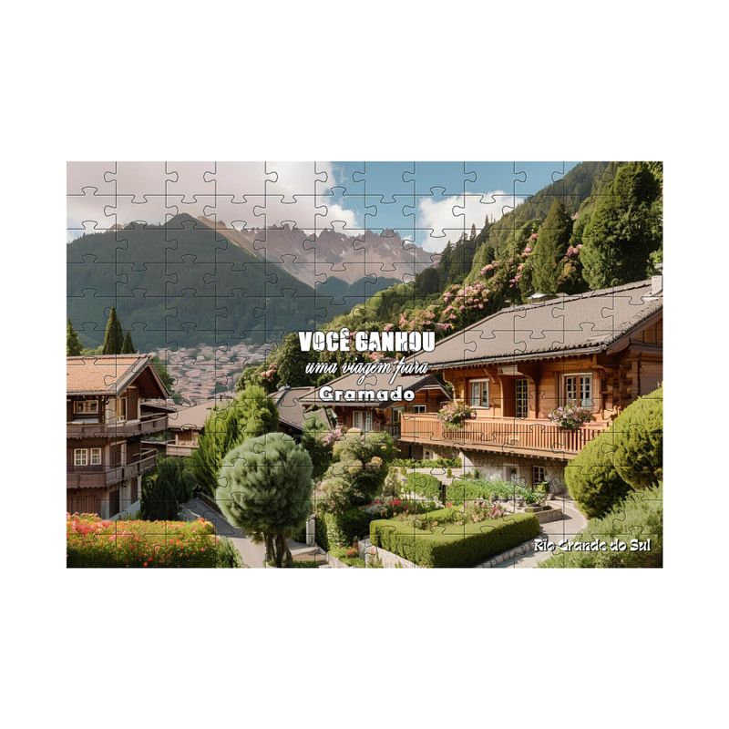 Ao abrir a embalagem, a pessoa encontra um quebra-cabeça misterioso e divertido. Peça por peça, a imagem vai se revelando… até que uma surpresa única aparece diante dos olhos: uma viagem para Gramado!