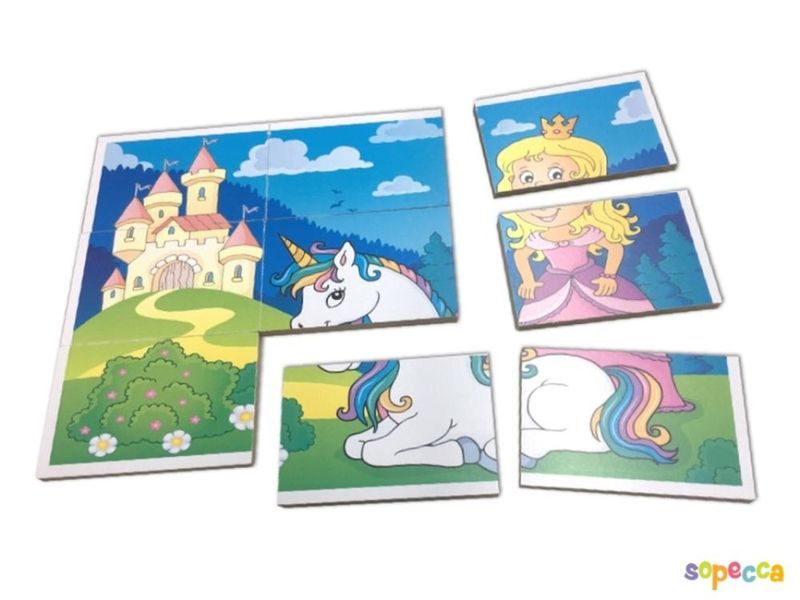 AVISO: Imagens meramente ilustrativas!! Um lindo quebra-cabeça Princesa e unicórnio que as meninas vão amar! Ideal para as crianças iniciarem suas atividades de percepção, fácil de montar e resistente. O quebra cabeça tem 9 peças, é bem colorido e divertido de montar. Mais que um passatempo divertido para toda família, os quebra-cabeças desenvolvem o raciocínio, coordenação motora e promovem a interação entre crianças Marca: Sopecca Personagem: Princesa e Unicórnio Referência: QB209 Quantidade de peças: 9 Peças Material base: Madeira MDF 6mm Tamanho de Cada Peça: 16x4cm Idade Recomendada: a partir de 24 meses