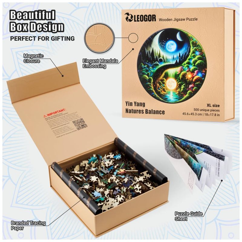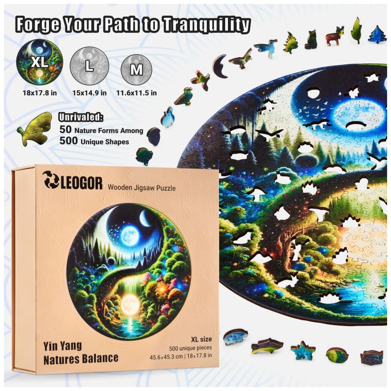 Este quebra cabeça yin yang de tamanho extra grande é feito com madeira de alta qualidade de 5 mm e possui corte a laser de precisão, garantindo que cada peça se encaixe perfeitamente. Com um conjunto de 50 formas extravagantes, como pássaros vibrantes, insetos, flores e plantas grandes e pequenas, este quebra cabeça de madeira de 500 peças é uma obra de arte que encanta os fãs de arte e vida selvagem.