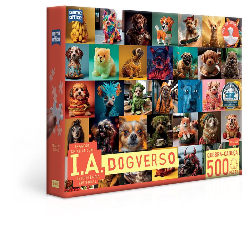 Inteligências artificiais são aprimoradas constantemente, sendo cada vez melhores em simular atividades humanas. Novas I.A.s surgem com a capacidade de gerar imagens a partir de uma descrição, abrindo a todos um novo universo! Divirta-se montando este quebra-cabeça de 500 peças do multiverso dos cães!
