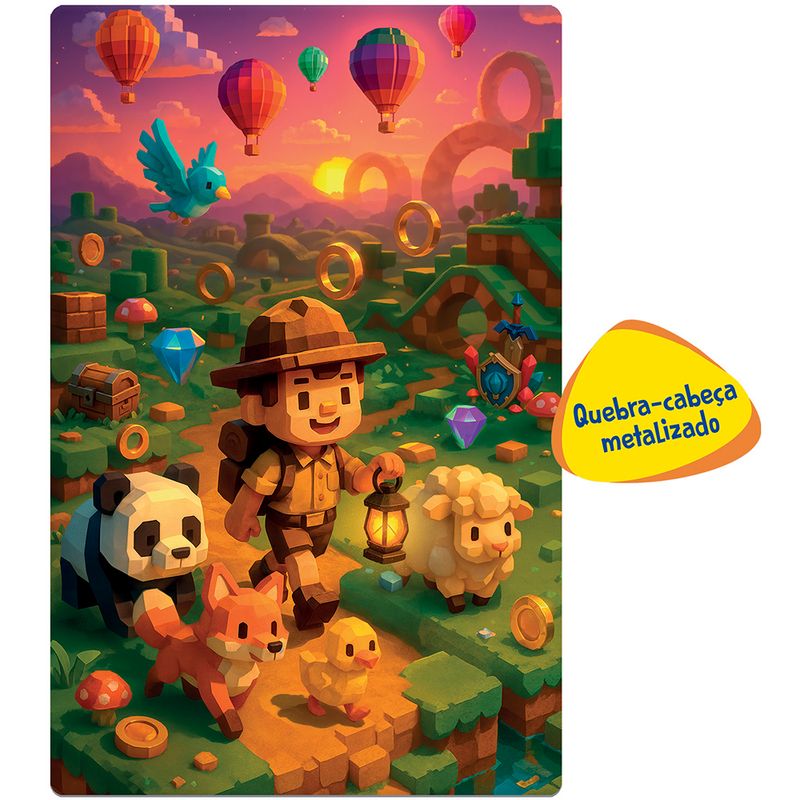 Um cenário pixelado cheio de cores, animais simpáticos e um explorador pronto para descobrir novos caminhos! Com 100 peças grandes e detalhes metalizados brilhantes, este quebra-cabeça é ideal para crianças a partir de 6 anos. Estimula a coordenação motora, o foco e a diversão em cada montagem!