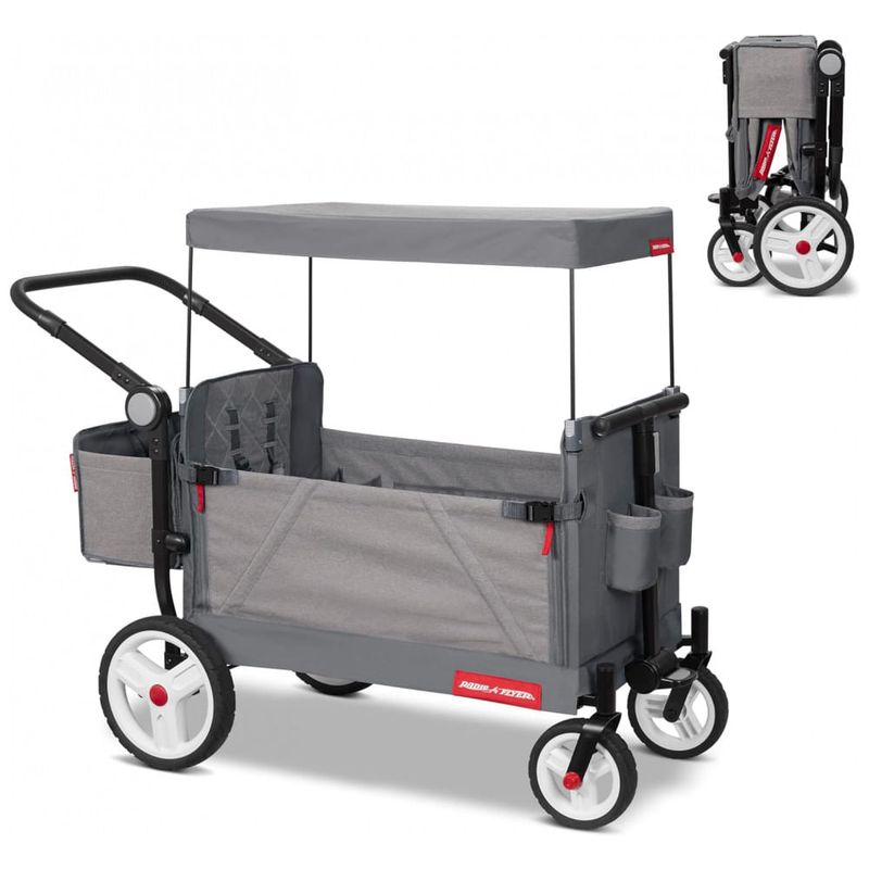 PARA CRIANÇAS Os carrinhos Radio Flyer atendem ao padrão de segurança de brinquedos ASTM F963 13. Este carrinho inclui um freio de pé traseiro, cintos de segurança de 5 pontos e um dossel de proteção UV para proteger seu bebê do sol.