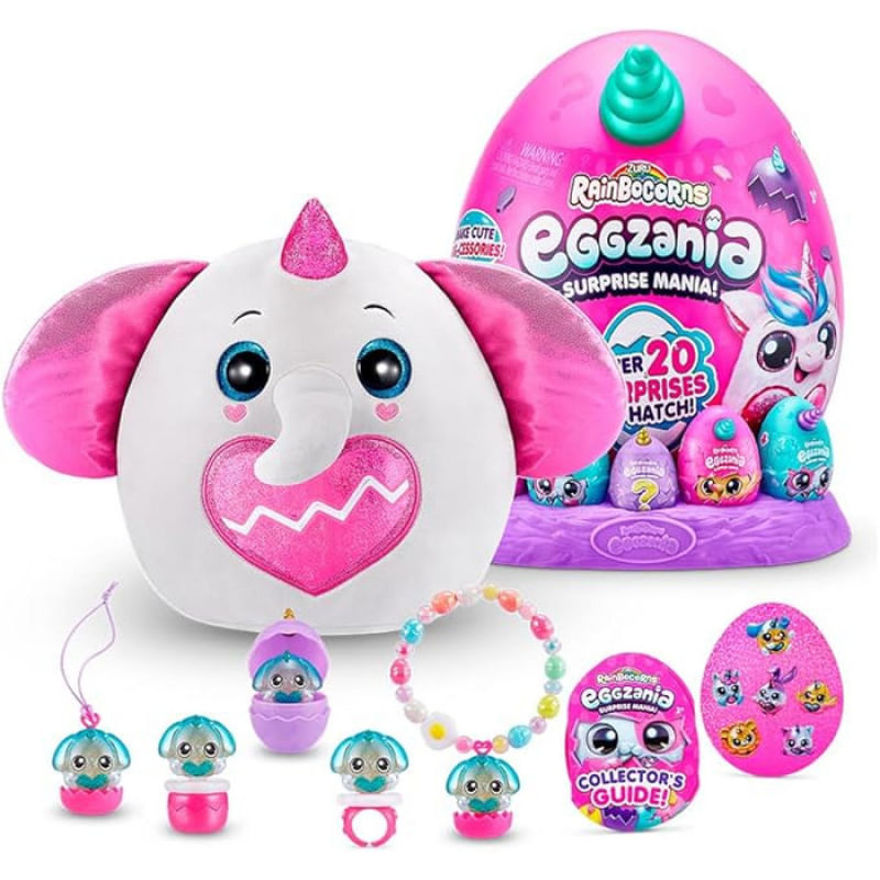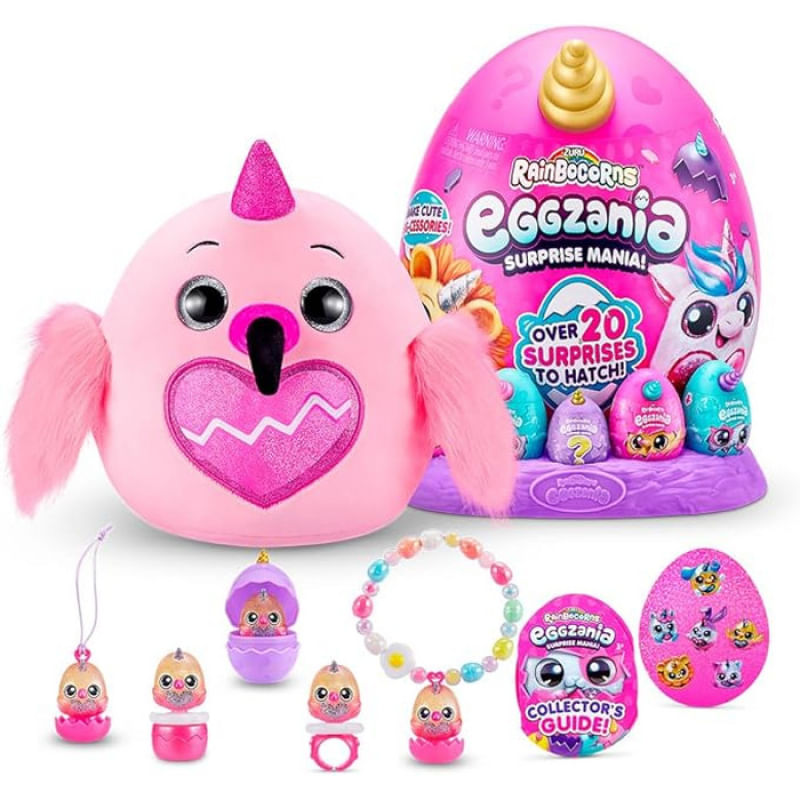 Cada pelúcia é macia e sedosa, perfeita para abraçar, e acompanha uma gema combinando, além de 5 mini ovos, adesivos, acessórios divertidos e uma piada exclusiva da Eggmania, garantindo boas risadas durante a brincadeira.