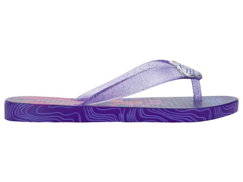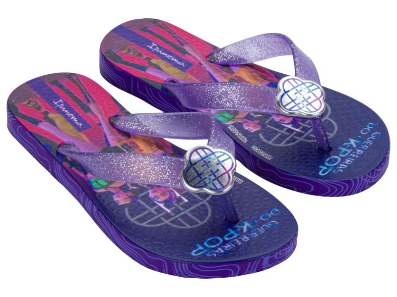 Novidade de licença no nosso portfólio! Guerreiras do K-Pop é uma animação que se tornou um fenômeno global, misturando fantasia, cultura pop coreana e música. A história acompanha três integrantes do grupo fictício Huntr/x, que, além de idols, também caçam demônios. A Ipanema traduz a estética vibrante da série em seu visual: a energia do show de música e dança, unida à fantasia mágica, ganha vida na grafia que destaca as personagens em um fundo repleto de seus elementos. O cabedal em jelly com glitter e o enfeite prateado no centro das tiras, enquanto a lateral da sola recebe estampa para completar o design cheio de atitude.