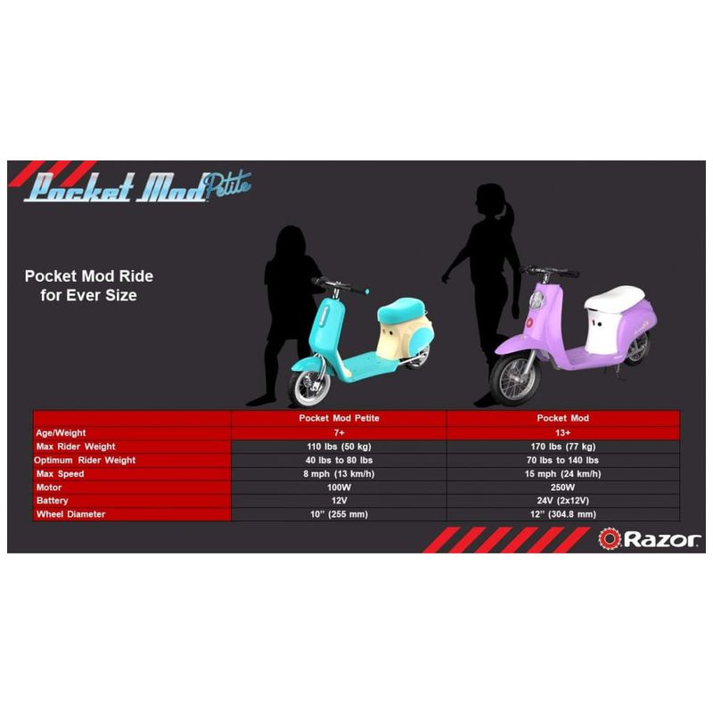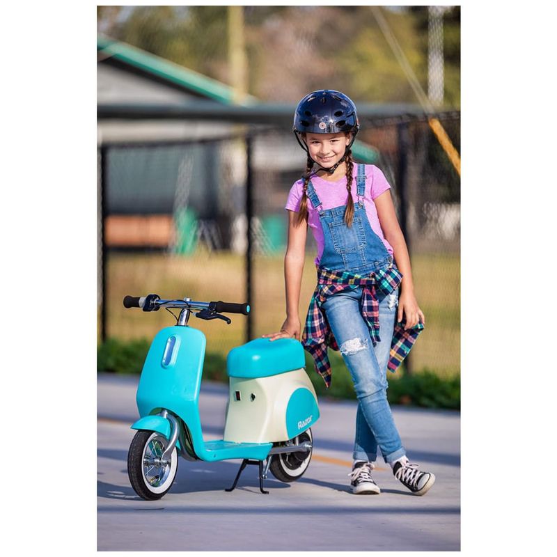 Razors Smallest Mod Uma scooter elétrica inspirada no vintage reduzida e desacelerada para pilotos de 7 anos ou mais, com um peso ideal de 18 a 36 kg e um peso máximo de 110 libras 50 kg