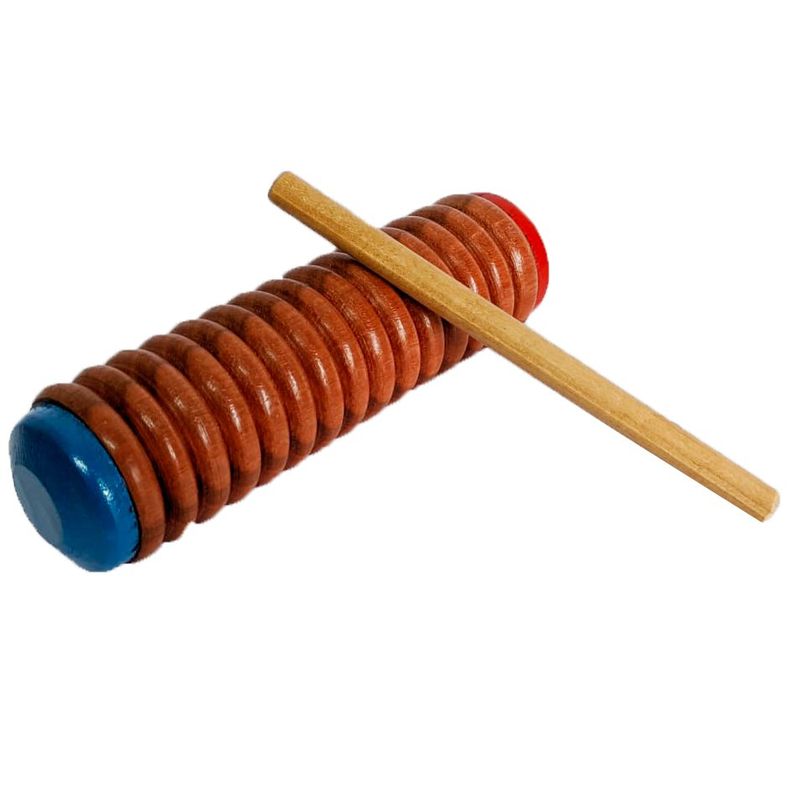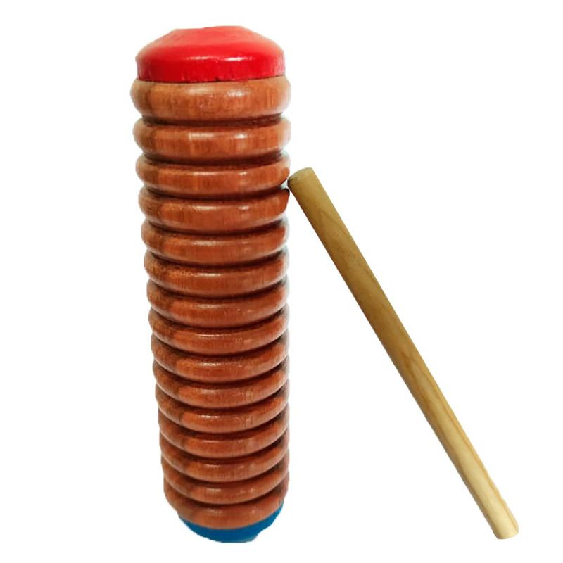 Torneado em madeira de boa sonoridade. Acompanha um baqueta