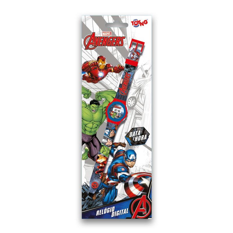 Agora as crianças vão aprender a ver a data e hora com o Novo Relógio digital dos Vingadores Nunca foi tão divertido ver as horas que nem agora, a garotada vai adorar! Acessório infantil moderno dos Vingadores Personagens que eles adoram,os heróis mais amados de todos! sua alimentação e 1 pilha LR41,15V (INCLUSAS)
