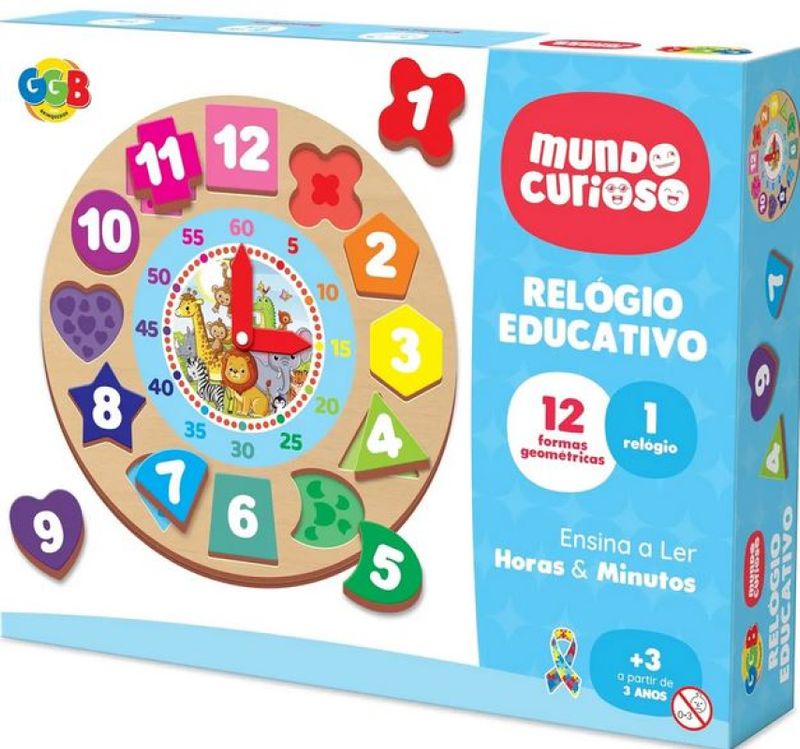 O relógio tem o tamanho de 18x18 cm, e suas peças de 3,3 cm super seguro e com o selo do INMETRO para que as crianças possam brincar e aprender com segurança.