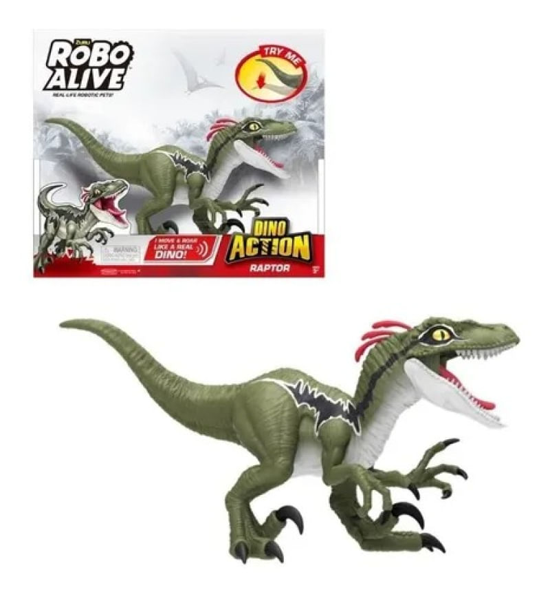Robo Alive Real Life Robotic Pets - Dino Action Com Som e Movimento – Raptor - Candide O novo Dino Action Raptor Robo Alive chegou para deixar suas brincadeiras mais radicais e emocionantes!