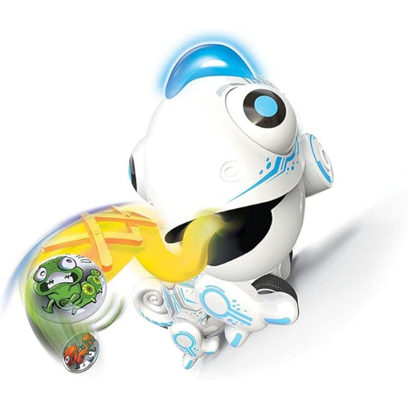 O Robô Camaleão da Fun é pura diversão tecnológica, com movimentos realistas e um design cheio de personalidade. Ele se move em diferentes direções através do controle remoto e desafia as crianças em uma brincadeira de três etapas para coletar o alimento. Basta mover, apontar e lançar a língua para capturar os insetos, que ficam armazenados em sua boca.