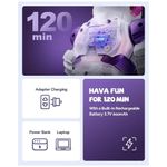 No modo programável, a criança pode criar sequências com até 50 movimentos usando o controle remoto, explorando noções básicas de lógica e ordem de comandos. O aplicativo Romo adiciona jogos de perguntas e respostas com rodadas de 10 questões sobre temas de natureza, Terra e espaço, combinando entretenimento com conteúdos introdutórios de ciência. A bateria recarregável de 3,7V 600mAh oferece até 120 minutos de uso após cerca de 2 horas de recarga via cabo USB incluso.