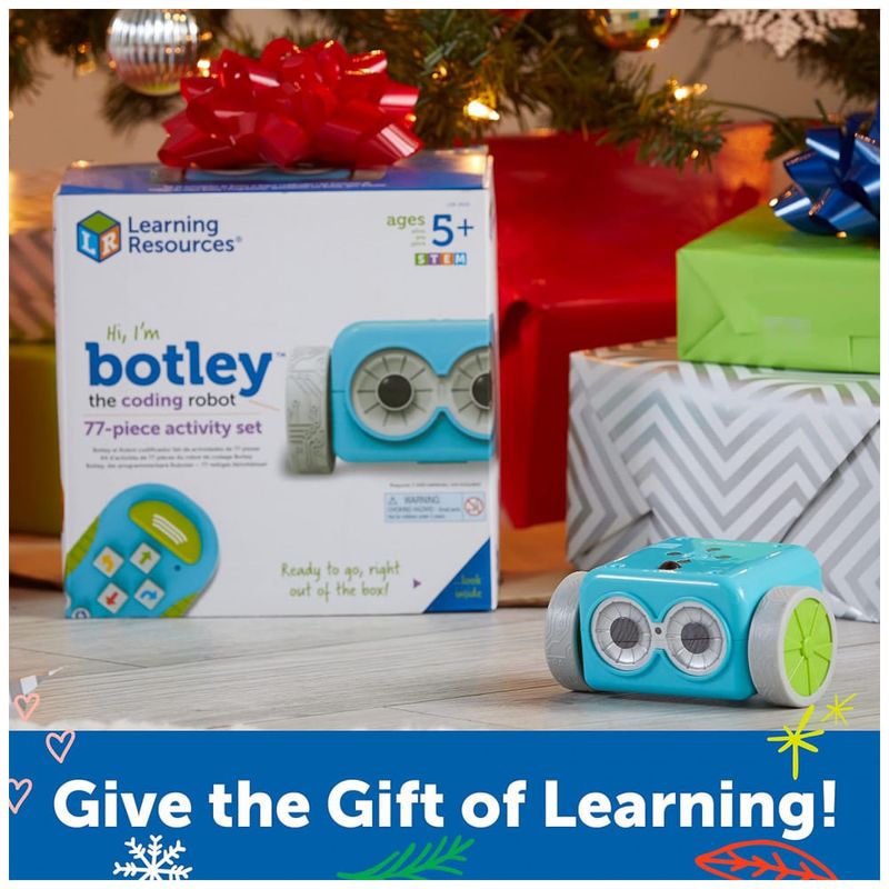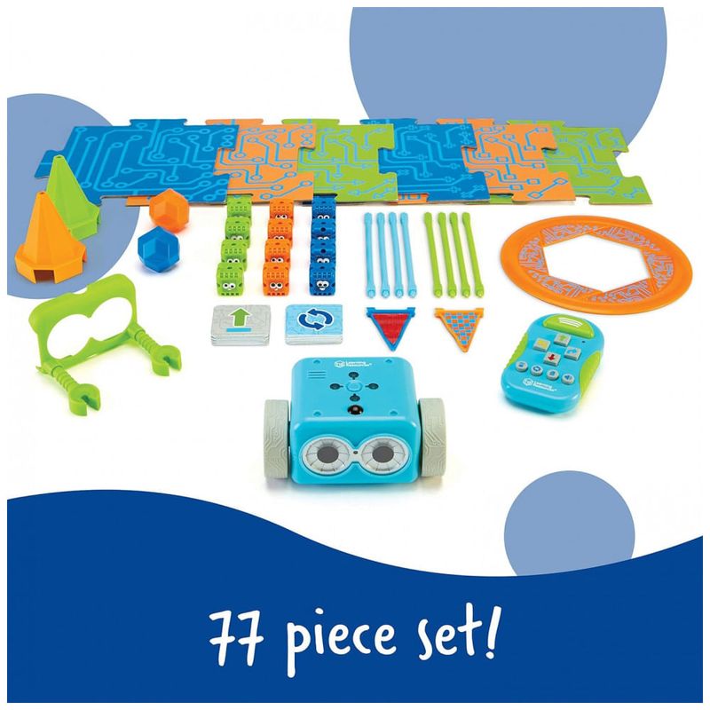 LÓGICA INTELIGENTE Botley tem a capacidade de detectar objetos à sua frente e evitá los. Ele também pode seguir comandos de loop, seguir pistas de obstáculos e seguir caminhos da linha preta. Ele ainda tem recursos ocultos para desbloquear. CONJUNTO DE ATIVIDADE DE 77 PEÇAS Os robôs de codificação são ótimos para aprender coisas novas, então Botley vem com um programador remoto, braços de robôs destacáveis, 40 cartões de codificação, 6 ladrilhos de dupla face, 27 peças de construção de obstáculos e um guia inicial com desafios de codificação