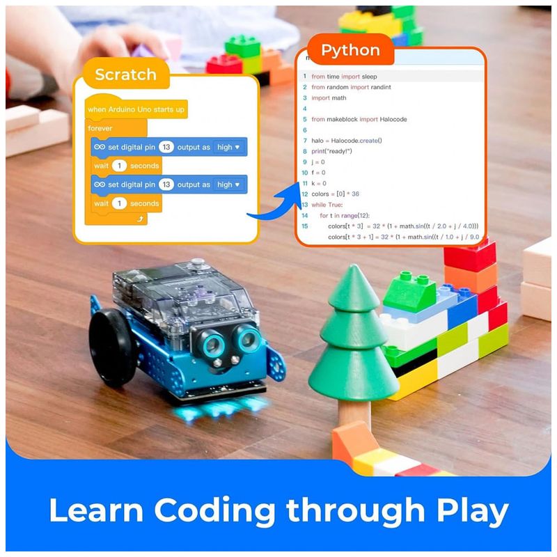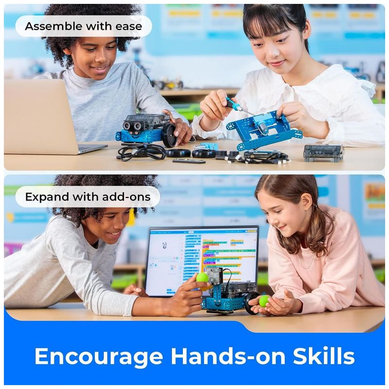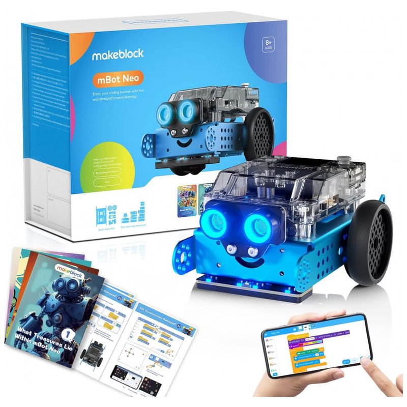 Makeblock mBot Neo Como brinquedo STEM para crianças de 8 a 12 anos, o Neo oferece três estágios, construção, cognição e criação. Aprendendo enquanto toca, esse robô de programação permite que as crianças aprendam a programar o arranhão e a píton, a montagem de eletrônicos e o conhecimento de robótica de maneira mais intuitiva. Isso aumentará a coordenação olho mão das crianças, a concentração, o pensamento lógico e a criatividade, da construção ao jogo.