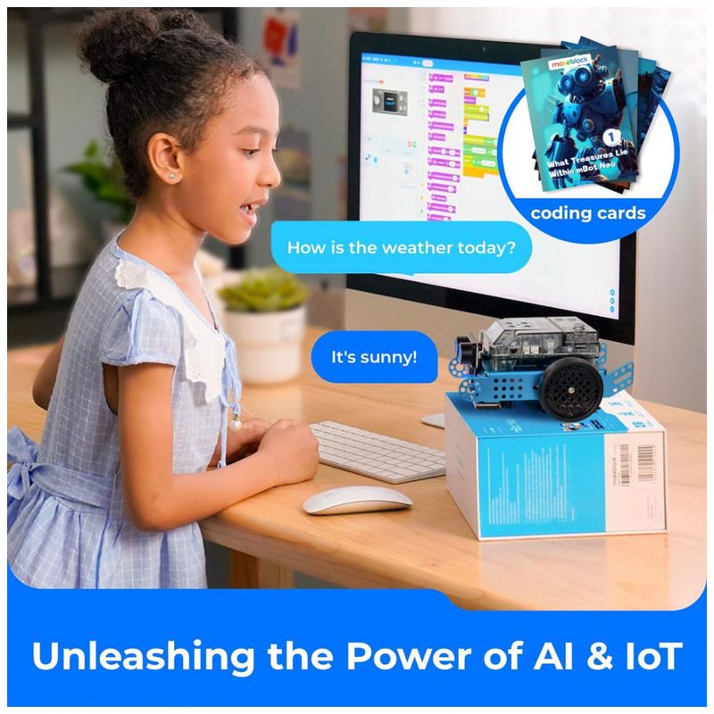 Graças ao CyberPi Com esta placa principal multifuncional, o CyberPi possui o sensor ultrassônico embutido, sensores de obstáculos, módulo de sensor de campainha, receptor e transmissor e módulo WIFI, fazer com que o Neo possa se conectar com a Internet e permitir que as crianças experimentem mais sobre a Internet das Coisas IoT . E para uso dos professores, o módulo wifi faz com que vários desses robôs de codificação possam ser conectados para executar tarefas juntos e simplifica o ensino compartilhando a mesma programação simultaneamente.