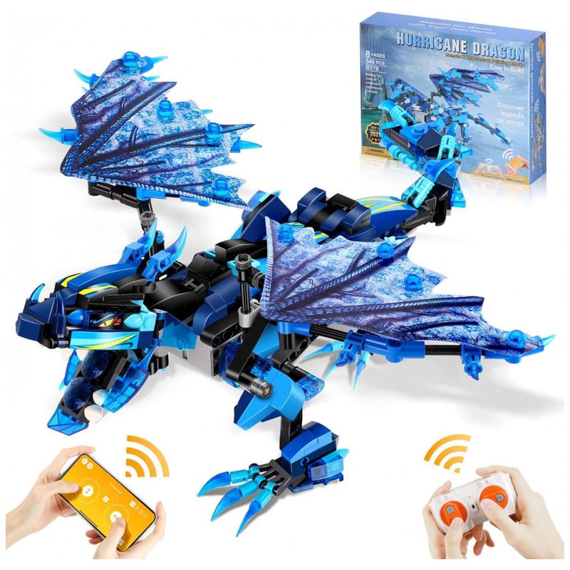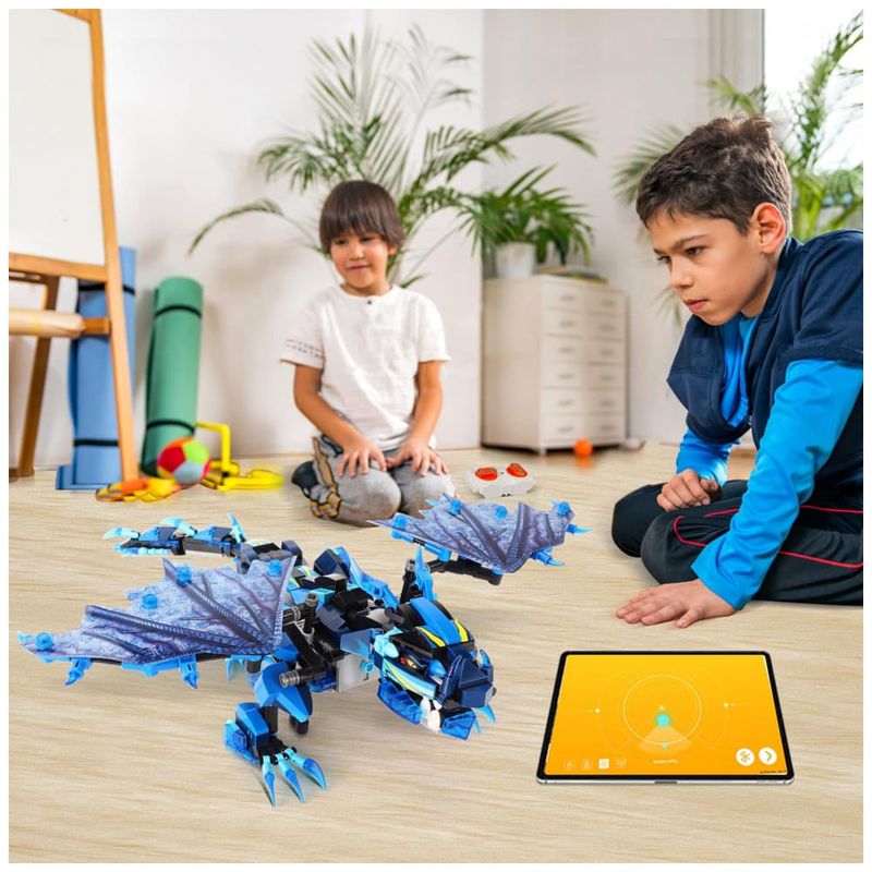 Controle remoto do telefone e do aplicativo os brinquedos de construção do dragão Sillbird podem ser controlados não apenas por um controle remoto de 2,4 Ghz a distância máxima é de 20 m, mas também através da conexão Bluetooth do aplicativo do telefone móvel. Possui modo de controle remoto, modo de caminho, controle de voz, programação STEM e sensor de gravidade, que é simples e fácil de usar. O robô pode se mover em todas as direções em ambientes internos ou externos, incluindo acrobacias de rotação esquerda, direita, para frente, para trás e 360 graus.