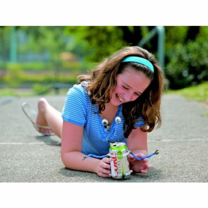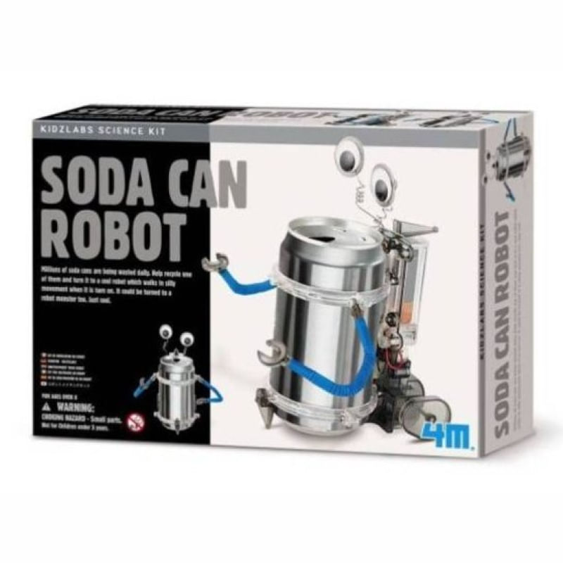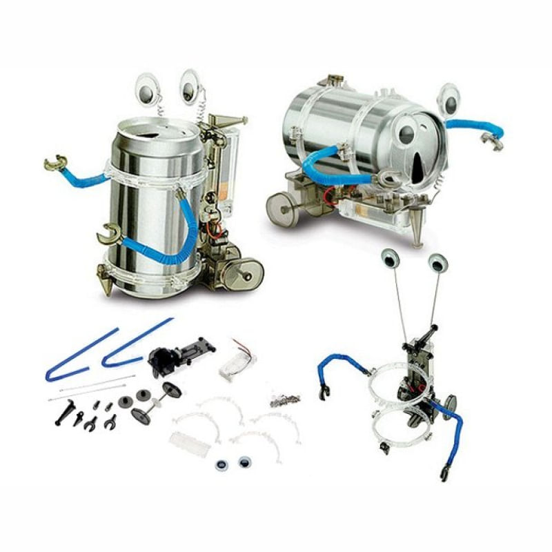 Transforme uma latinha de metal neste simpático robô de olhos esbugalhados que anda. Também pode ser transformado em um monstro robótico. A criança necessita reciclar uma latinha de refrigerante para completa o projeto.
