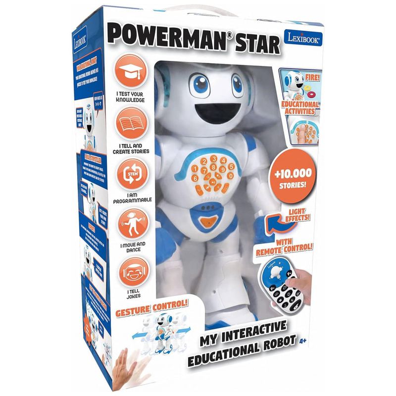 REPETE O QUE VOCÊ DIZ Com a função de reprodução e gravação, o Powerman repetirá o que você diz com sua divertida voz de robô. Ele também irá memorizá los e reutilizá los mais tarde.