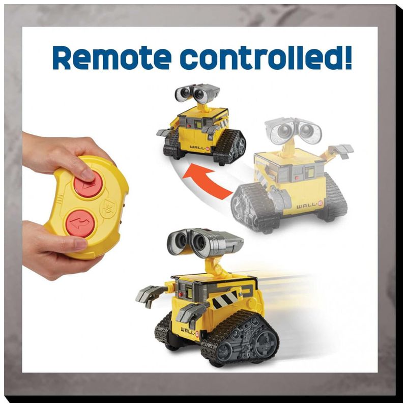 Alimentando o jogo imaginativo, esta unidade WALLE com controle remoto pode avançar e recuar com um giro em j para mudar de direção usando o controle remoto de 2 botões.
