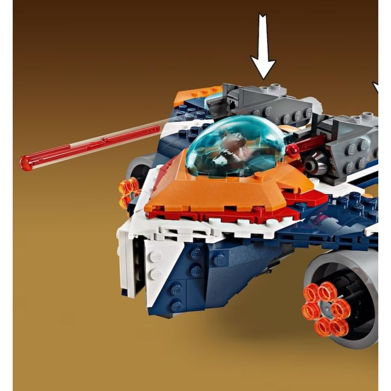 • Brinquedo Guardiões da Galáxia da Marvel Studios para construir, para crianças a partir de 8 anos • Inclui minifiguras de Rocket e Ronan, o Acusador, com acessórios • Este brinquedo de ação para construir tem 2 mísseis disparadores de mola e 2 disparadores de 6 pinos • Depois de montado, o modelo pode ser exibido para que todos possam admirar • Conjunto de brinquedos para construir LEGO® Marvel presente para crianças a partir de 8 anos • As crianças podem ampliar e girar os conjuntos em 3D usando o aplicativo intuitivo LEGO® Builder • Veja a linha completa LEGO® Marvel para mais brinquedos de super-heróis para construir para crianças • Kit de 290 peças medindo mais de 15 cm de comprimento e 24 cm de largura.