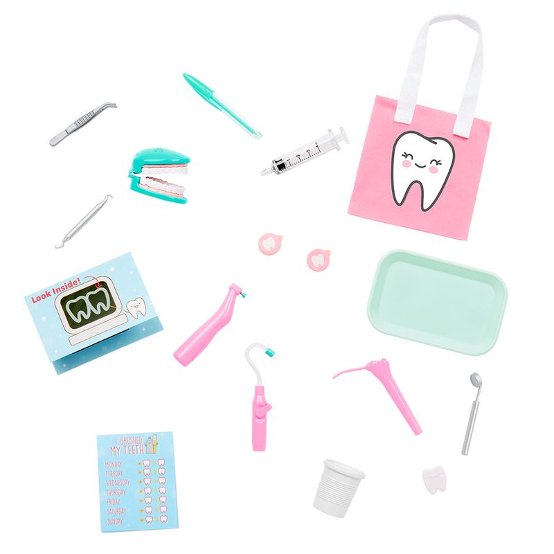 Suas Bonecas Our Generation vão ficar ainda mais lindas com esses incríveis acessórios! Os acessórios para as Bonecas Our Generation foram pensados especialmente para transformar a brincadeira em um momento mais criativo e repleto de expressão! Our Generation não é apenas sobre uma boneca, ou um livro, ou mesmo um fantástico jogo de chá em miniatura. É sobre meninas crescendo juntas, criando a narrativa de uma geração extraordinária, e também sobre os pais que entendem as pressões de ser uma garota mais do qualquer geração de pais anterior à eles. É sobre dar às meninas uma voz para criar e moldar uma comunidade que amam. Além disso os produtos Our Generation também contam com uma embalagem reciclável, especialmente desenvolvida para uma geração mais ecológica que não aceitaria nada menos! (Pets e Bonecas Our Generation vendidos separadamente). Deixe sua coleção Our Generation mais completa com os Acessórios para Bonecas - Our Generation! Acompanha: Seringa, avental, aparelhos dentários.