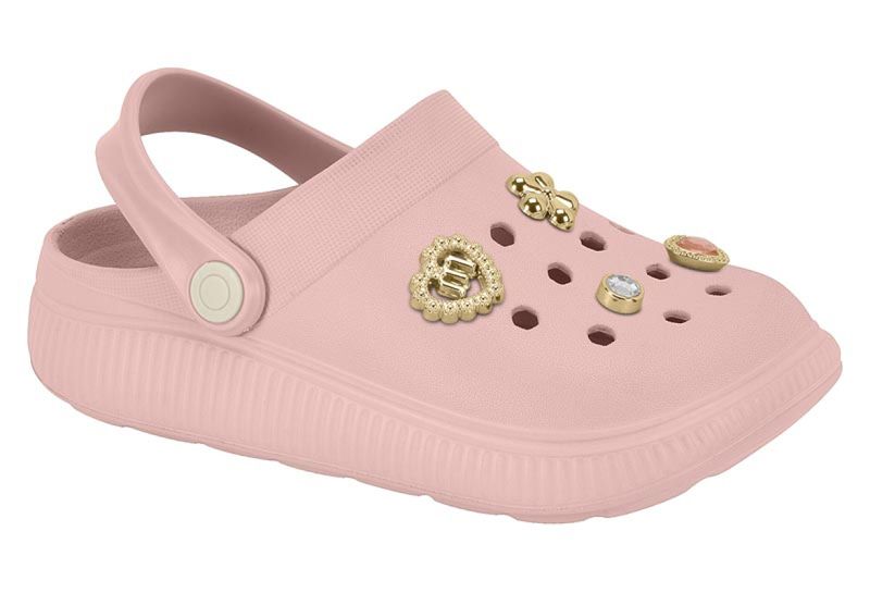 A Babuche Infantil Molekinha Pins é confeccionada com E.V.A de alta qualidade com solado antiderrapante. Essa babuche infantil contém pins metalizados com desenhos desenhos de coração, flor e strass , deixando esse modelo perfeito e confortável para as pequenas. Gostou? Então garanta já a Babuche Infantil Molekinha Pins!