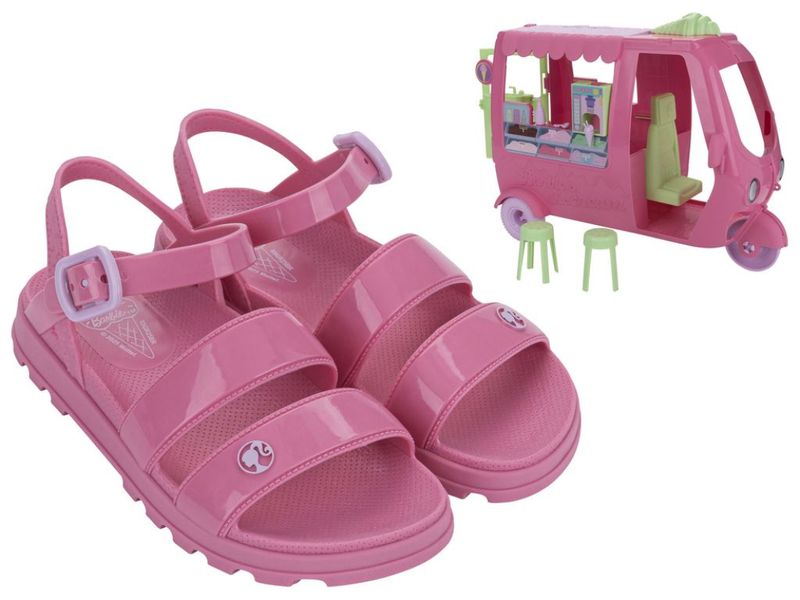 Está fazendo muito calor em Malibu e a Barbie acaba de chegar com a sua nova sorveteria sobre rodas, trazendo muita diversão e refrescância! Em um formato super lúdico, lembrando os icônicos tuk-tuks indianos, possui 3 rodas livres, toldo retrátil e é totalmente decorada com a temática de sorvetes, e acompanha todos os itens essenciais para a Barbie atender a clientela exigente de Malibu! Vem com estante para apoio dos preparos, 2 bancos na altura ideal para a Barbie, pia, máquina de milkshakes, colher de sorvete e 6 preparos prontos para deixar a imaginação fluir! No topo, é decorado com um sorvete derretido super divertido, possui banco para a motorista e porta traseira para fácil acesso das bonecas! Totalmente fabricada em PP, com personalização por adesivos.