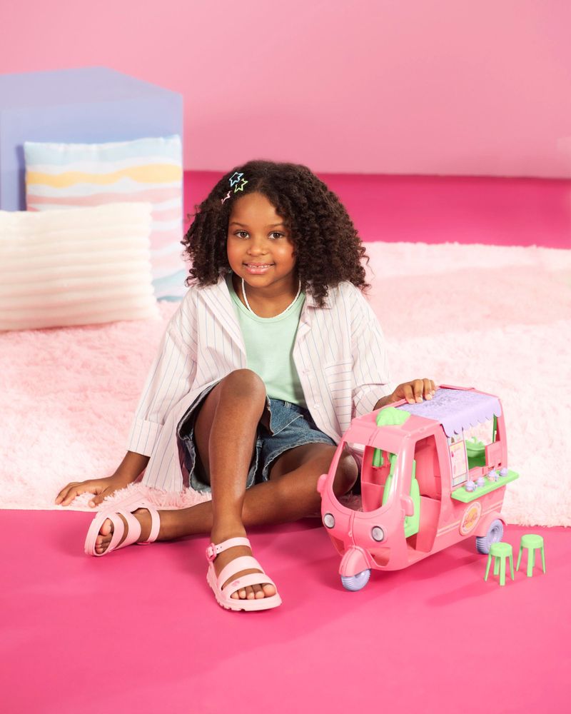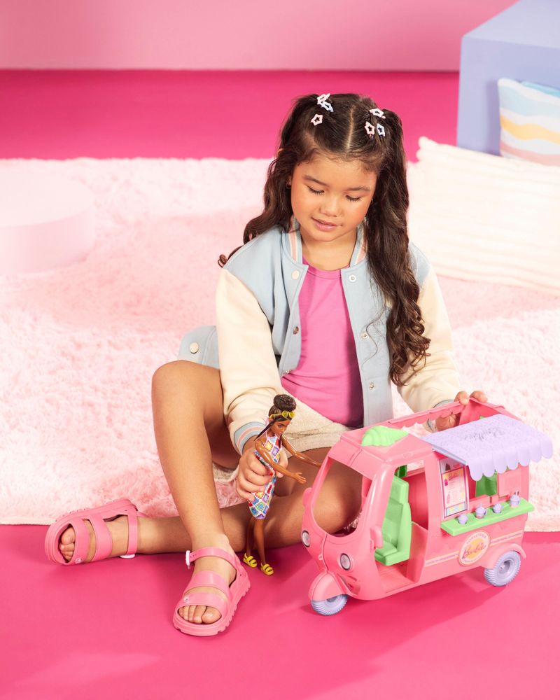 Deixando a brincadeira ainda mais divertida e confortável a sandália foi pensada para abraçar os pezinhos, com uma palmilha super anatômica, a sola flat com detalhes tratorados agregam mais personalidade ao arquétipo, ressalta