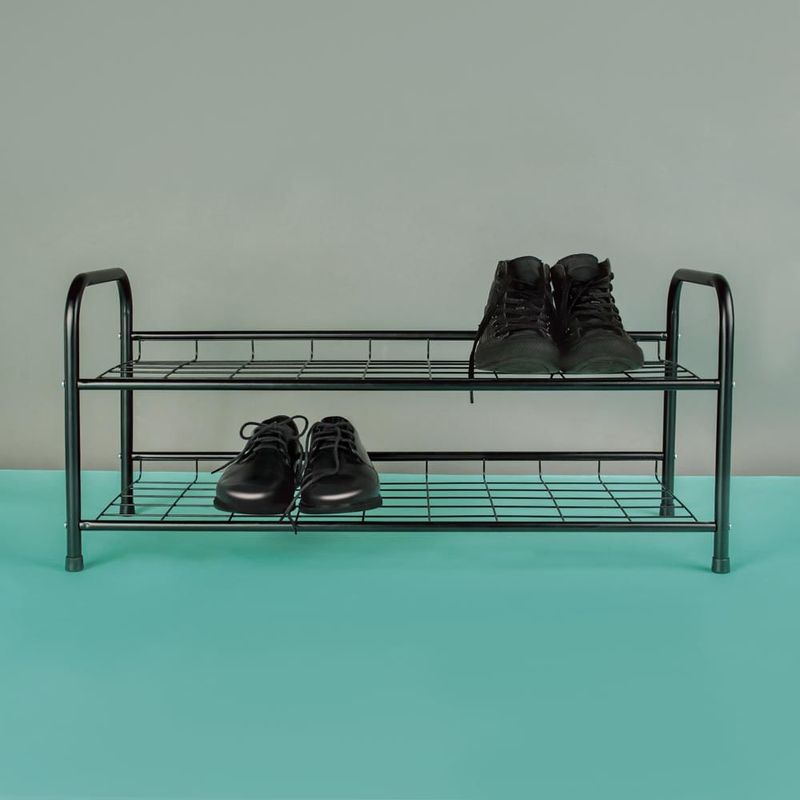 Deixe seus sapatos organizados com a Sapateira 2 Andares. Contando com capacidade para seis pares de sapatos, ela é ideal para guardar calçados e deixá-los arejados, evitando o mofo e mau cheiro que pode ocorrer ao colocá-los em locais fechados. Com estrutura de aço pintado em epóxi a pó na cor preta, é espaçosa e possui sapatas de proteção, impedindo que a sapateira arranhe o chão. Resistente, suporta até 10 Kg distribuídos. Garanta sua casa arrumada com a Sapateira 2 Andares.