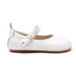 Sapatilha infantil na cor branca estilo boneca em couro extra macio. Possui fecho prático em velcro e sola antiderrapante.