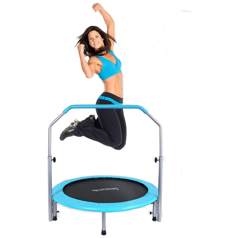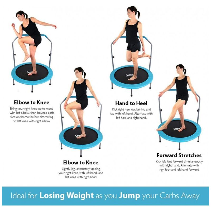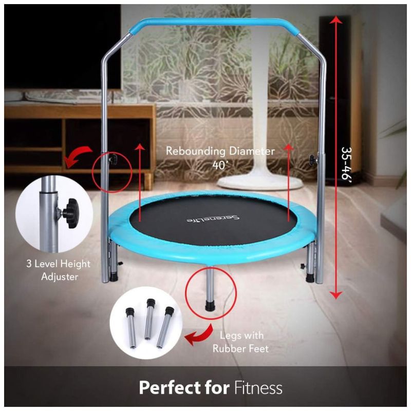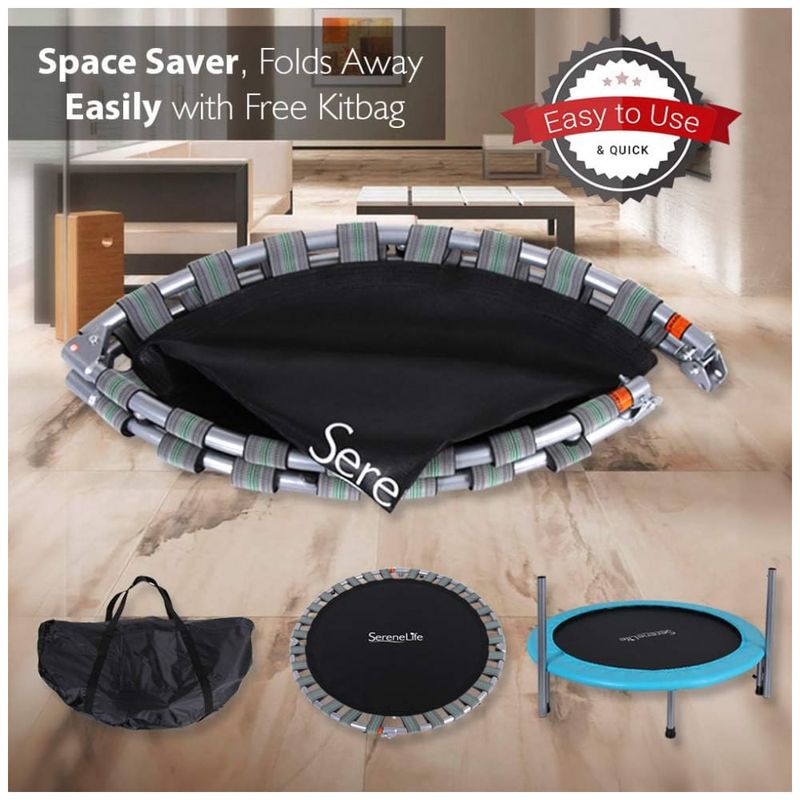 DOBRÁVEL E ECONOMIZADOR DE ESPAÇO O trampolim Serenelife é portátil e dobrável. Dobrável fácil e projetado para caber em pequenos espaços na academia ou em casa. Seu tamanho conveniente permite transportá lo de um local para outro sem qualquer aborrecimento.