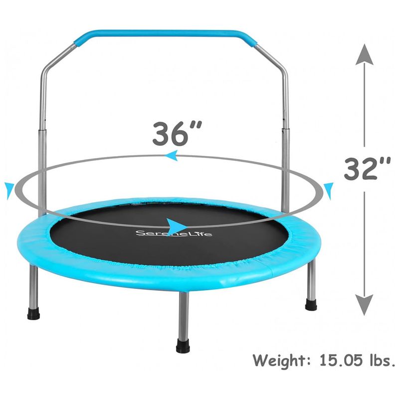 DOBRÁVEL E ECONOMIZADOR DE ESPAÇO O trampolim elástico Serenelife é portátil e dobrável. Dobrável fácil e projetado para caber em pequenos espaços no playground, academia ou em casa. Seu tamanho conveniente permite transportá lo de um local para outro sem qualquer aborrecimento.