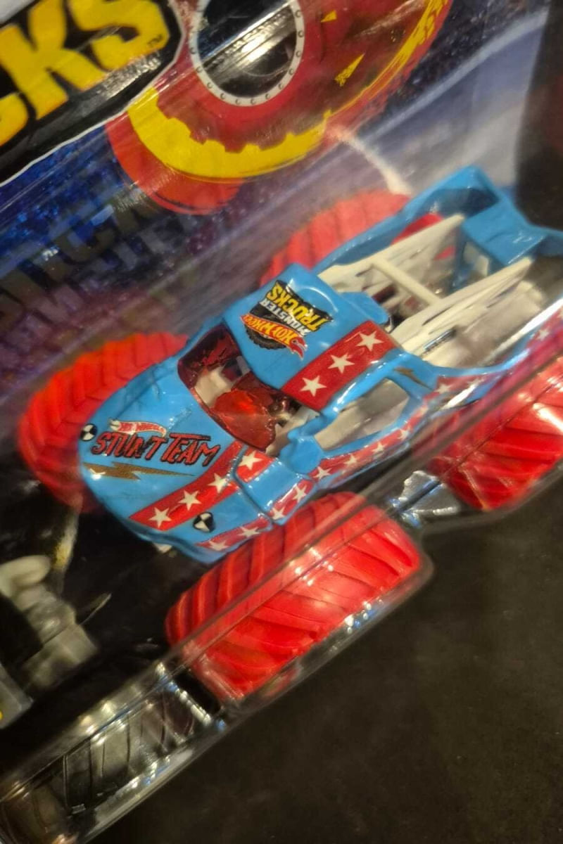 Cada pacote inclui um monster truck metálico e um carro amassável exclusivo, proporcionando diversão imediata de esmagamento logo ao abrir a embalagem.