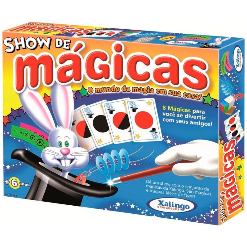Ficha Técnica:Marca: Xalingo;Nome do produto: Show de Mágicas;Idade recomendada: A partir de 6 anos;Selo Inmetro: CE-BRI/IQB 5923;Contém: 8 truques de mágica.