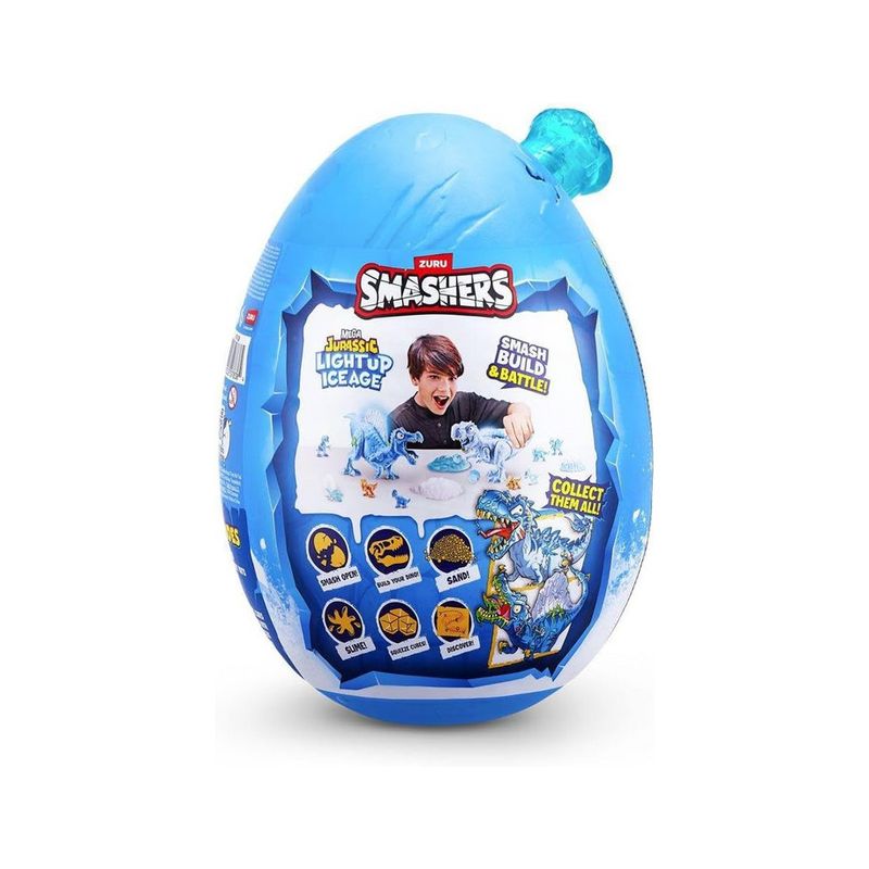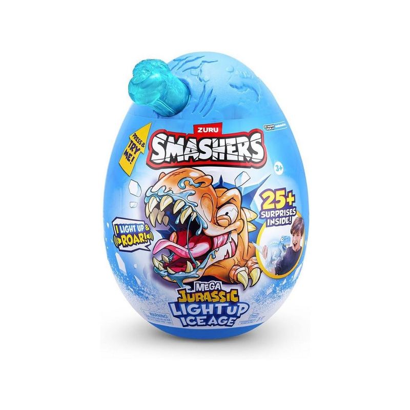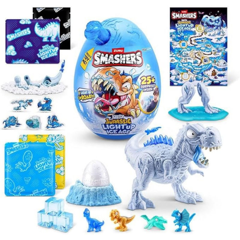 O Smashers Mega Jurassic Era do Gelo da Fun leva as crianças para uma grande aventura pré histórica repleta de descobertas e emoção. Dentro do ovo gigante azul estão escondidas mais de 25 surpresas, e a diversão já começa na embalagem com uma cabeça de dinossauro interativa que acende e emite sons de rugido ao ser pressionada, tornando a experiência ainda mais envolvente desde o primeiro momento.