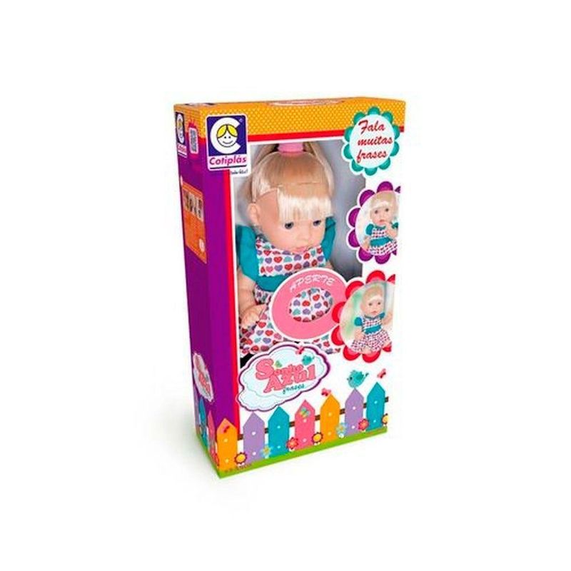 A boneca Sonho Azul, da Cotiplás, é fabricada em materiais de alta qualidade para garantir durabilidade e resistência durante seu uso. Muito fofinha, ela usa um lindo vestidinho de borboletas e fala diversas frases ao apertar sua barriguinha, auxiliando no aprendizado de fala para as crianças e na imaginação para brincar. Pensada especialmente para acompanhar as meninas em todos os momentos, será a companhia perfeita para se divertir e desenvolver uma relação de amor e afeto.