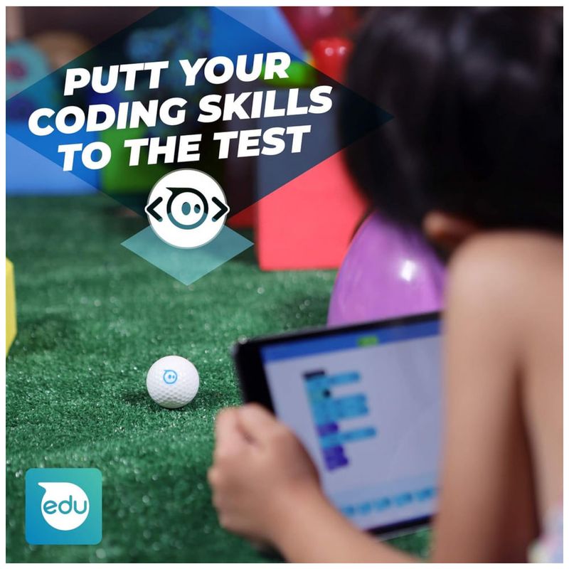 TENHA UM BURACO DE DIVERSÃO Jogue com a diversão Este Sphero Mini com tema de golfe traz muita diversão em um pequeno robô programável do tamanho de uma bola de golfe real. Equipado com um giroscópio, acelerômetro e luzes LED coloridas, esta bola robótica habilitada para aplicativo permite que você dirija, jogue e codifique usando nossos aplicativos gratuitos.