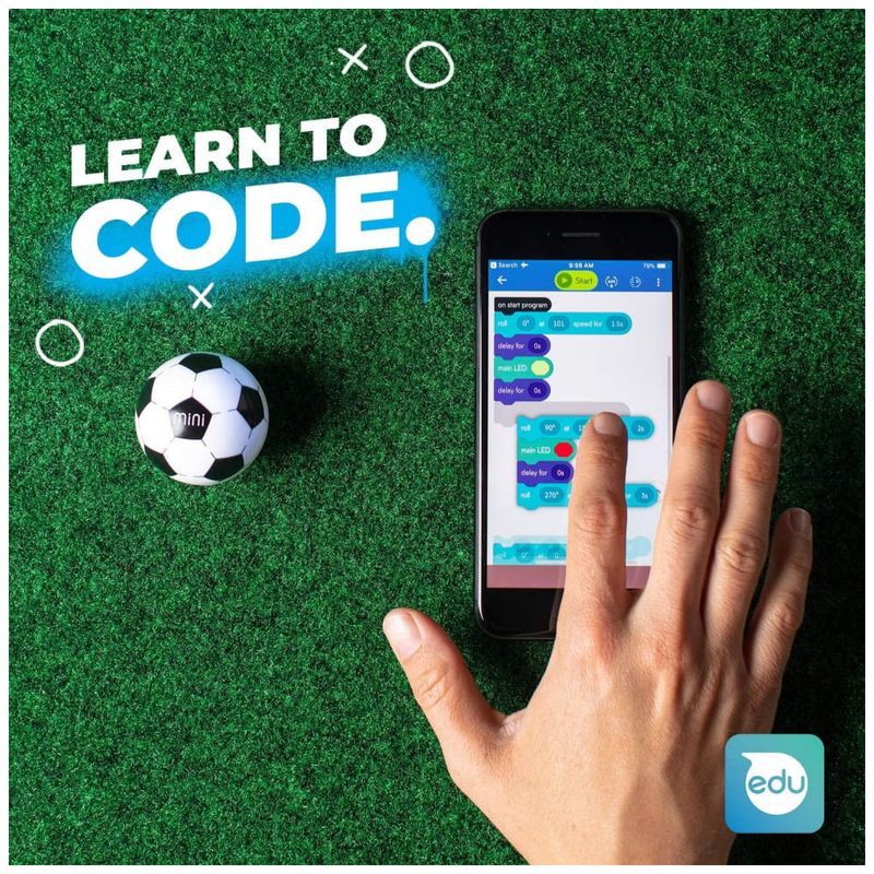 PONTOS GRANDES COM UM POUCO ROBÔ Este Sphero Mini com temática de futebol traz muita diversão em um pequeno robô programável do tamanho de uma bola de pingue pongue. Equipado com um giroscópio, acelerômetro e luzes LED coloridas, esta bola robótica habilitada para aplicativo permite que você dirija, jogue e codifique usando nossos aplicativos gratuitos.