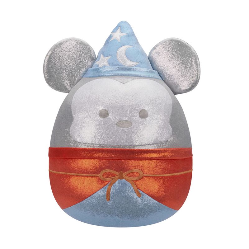 Aumente seu Esquadrão de Squishmallows com esta pelúcia supermacia e colecionável da Disney. Comemore os 100 anos de maravilhas da Disney com Mickey, em suas versões: Líder da Banda, Vapor Willie e Aprendiz de Feiticeiro. Leve esta adorável pelúcia em longas viagens de carro, avião, maratonas de filmes e muito mais.
