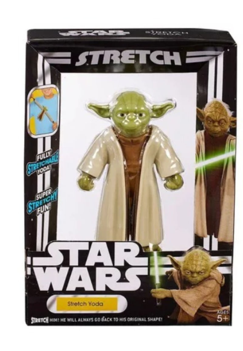 O primeiro e único Yoda, agora na forma Stretch! Estique-o, puxe-o, amarre-o em nós. Quando você o solta, ele usa seu incrível alongamento para retornar lentamente ao seu tamanho e forma originais! Divirta-se com este incrível e super elástico Stretch do Star Wars! Yoda era um lendário Mestre Jedi e mais forte do que a maioria em sua conexão com a Força.