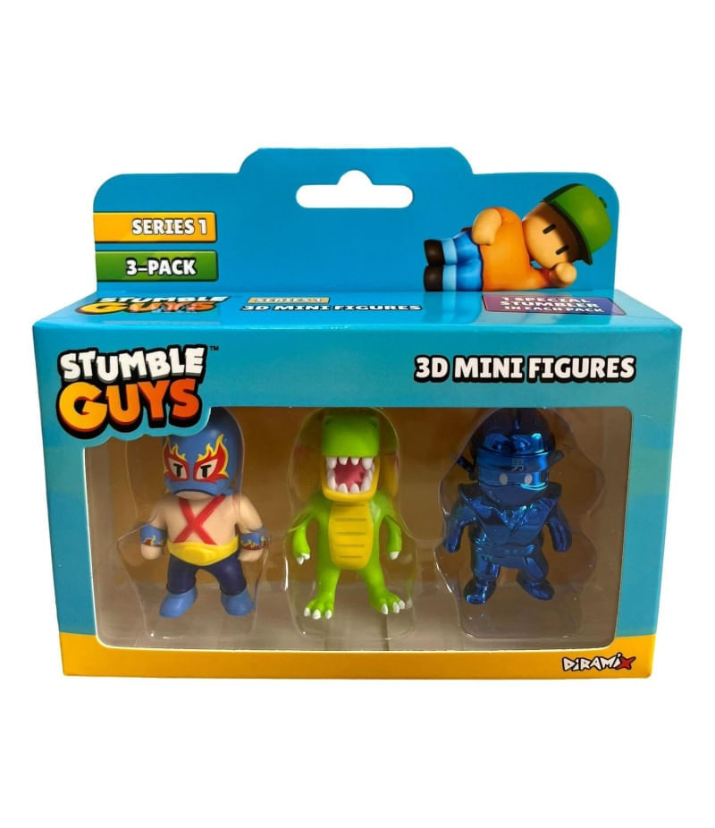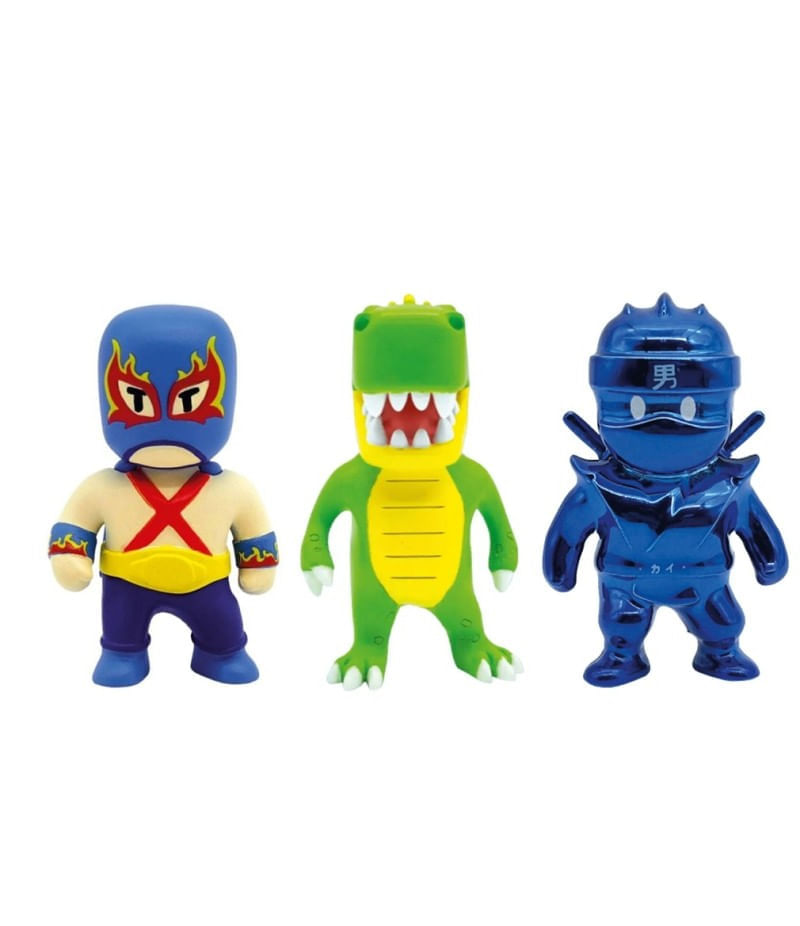 Stumble Guys - Pack com 3 Mini Figuras 3d - Luchador, T-Rex e Dynamitron da Estrela.