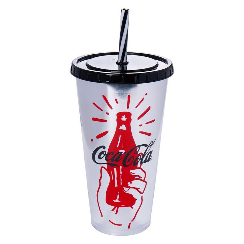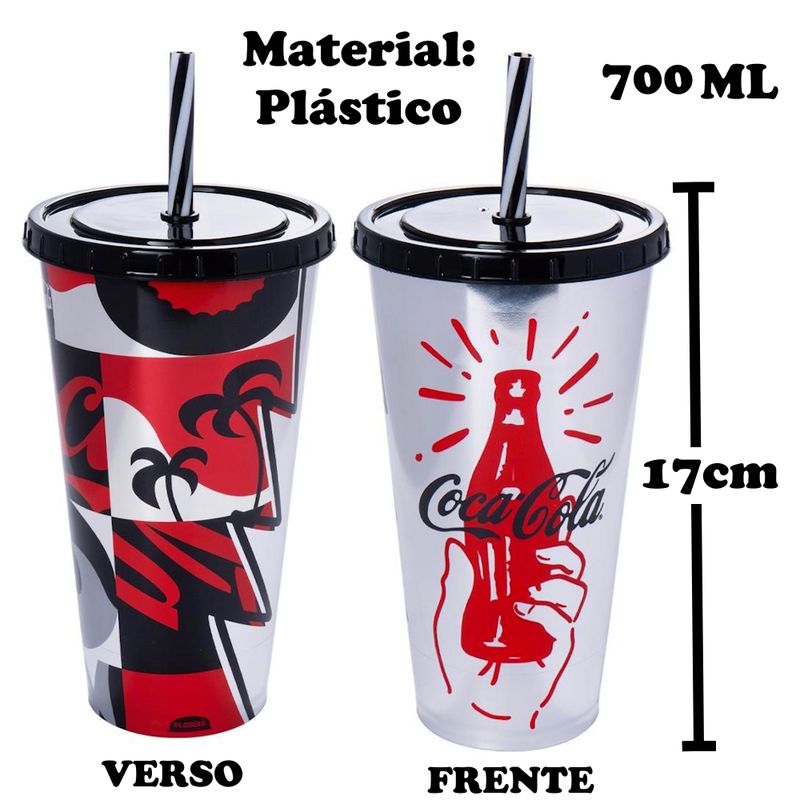 Copo da Coca-Cola Estampado com Tampa e Canudo 700ml Plasútil Original