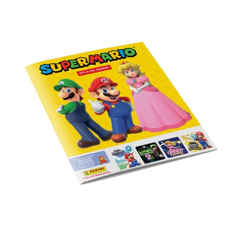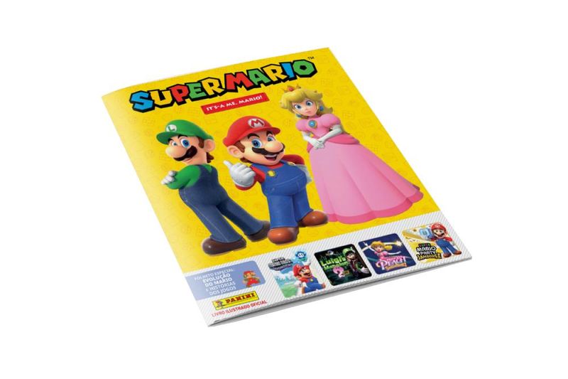 O Livro Ilustrado Oficial SUPER MARIO: It’s-a me, Mario! chegou para levar os fãs a uma jornada inesquecível pelos jogos Super Mario's Wonder, Luigi's Mansion 2, Princess Peach Show Time e Super Mario Party Jamboree. São 40 páginas e 224 cromos colecionáveis, incluindo 64 especiais com efeito metalizado e 16 cromos que brilham no escuro! Além disso, tem um pôster exclusivo com a evolução dos games Super Mario — nostalgia, diversão e o melhor do universo dos encanadores mais famosos do mundo dos games num álbum imperdível para todo colecionador.
