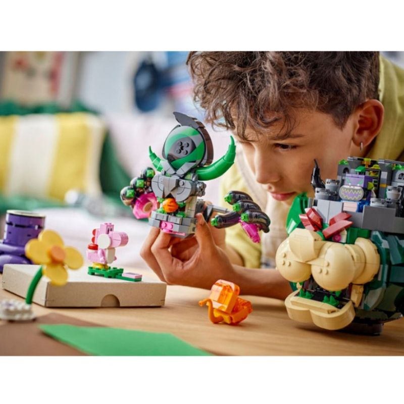 Hora de encarar o chefe final! O conjunto de construção de batalhas contra chefes LEGO Super Mario Príncipe Florian e Castelo Bowser (72042) dá vida ao final épico de Super Mario Bros Wonder para jovens fãs de jogos a partir de 9 anos. As crianças podem construir o enorme Castelo Bowser voador completo com ação de tiro de bolas de fogo, um interior detalhado incluindo uma cela para capturar o Príncipe Florian e a capacidade de levantar do seu suporte para que as crianças possam "voar" por uma sala para cenas de batalha dramáticas! Os jovens construtores podem ajudar as heroicas figuras Pink Yoshi e Príncipe Florian a enfrentar as ameaçadoras figuras Wonder Bowser Jr. e Fiery Note Piranha em emocionantes missões de resgate. O castelo apresenta elementos interativos incríveis que dão vida às batalhas! Os construtores podem levantar o Castelo Bowser do suporte e pousar para revelar o interior detalhado onde o Príncipe Florian está preso em sua cela, depois levantar o castelo inteiro do suporte (ou apenas levantar a parte superior) para "voar" e atirar bolas de fogo da boca de Bowser. As crianças podem colocar uma figura interativa LEGO Mario, LEGO Luigi ou LEGO Peach (dos conjuntos 71439, 71440, 71441 ou 72043 – cada um vendido separadamente) no conjunto para desencadear reações digitais e encenar a batalha final contra o chefe Super Mario Bros Wonder. Este conjunto de construção repleto de diversão é perfeito como presente para crianças que amam os jogos Super Mario, brinquedos de construção e brincadeiras de faz de conta cheias de ação. Os jovens jogadores podem combinar este conjunto com outros conjuntos LEGO Super Mario (cada um vendido separadamente) para criar um universo LEGO Super Mario completo. O aplicativo LEGO Super Mario fornece instruções digitais passo a passo e ideias criativas para orientar a construção; para uma lista de dispositivos Android e iOS compatíveis, visite LEGO.com/devicecheck. Contém 1.251 peças.